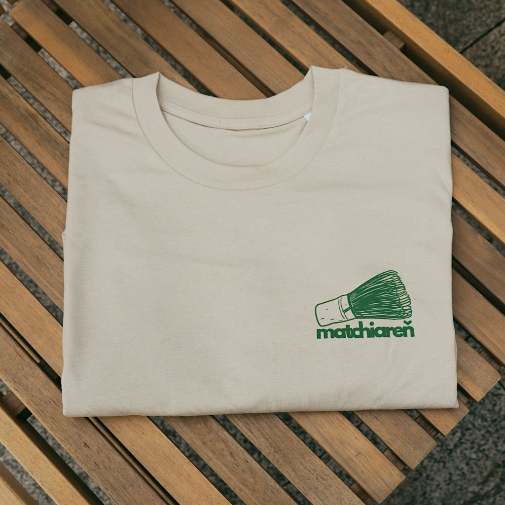 Dizajn: malý matcha motív vpredu, statement nápis na chrbte